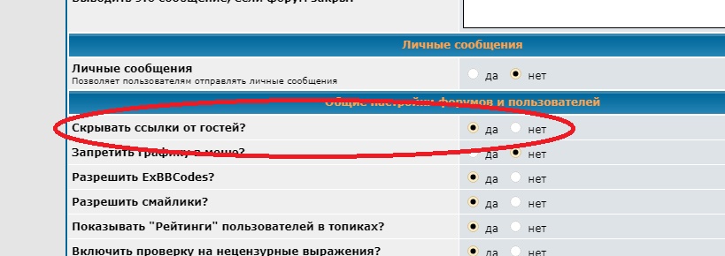 Назначение : добавление в администраторский раздел пункта "‘Скрывать ссылки от гостей?" (да/нет). Дополнение позволяет одним кликом включить или отключить скрытие ссылок для гостей без каких-либо правок файлов форума.